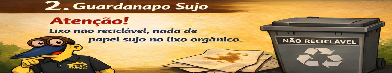 ⚠️ Berê: Parece papel, mas papel sujo contamina a reciclagem. O destino correto é o lixo Não Reciclável.